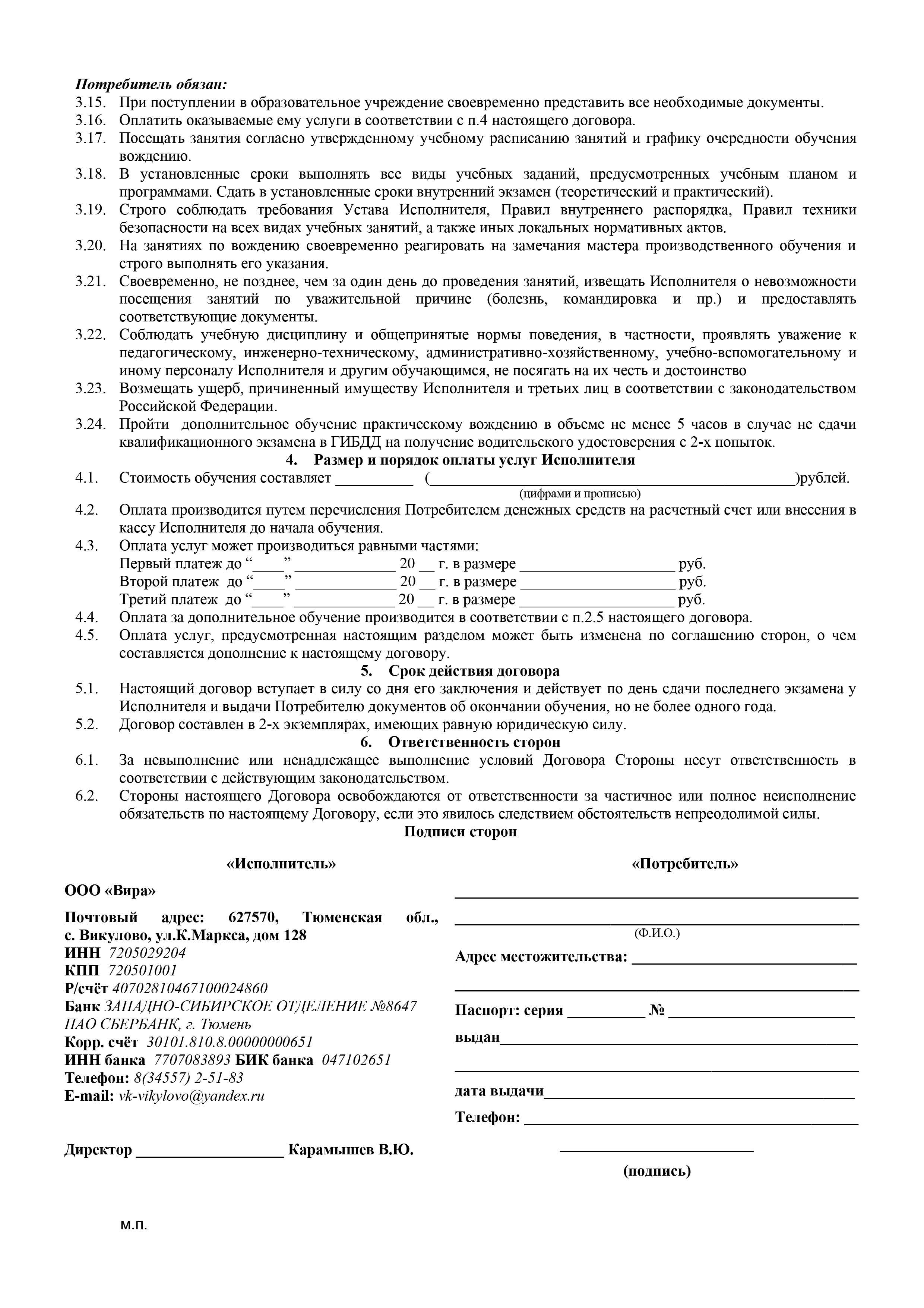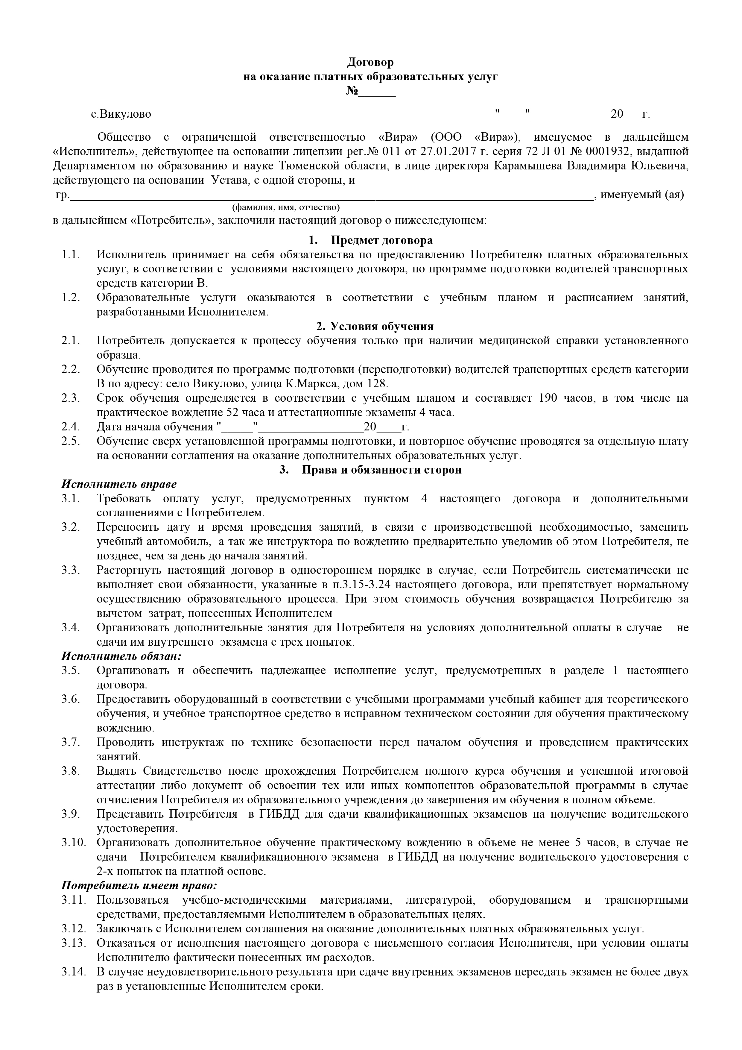 Договор об оказании образовательных услуг