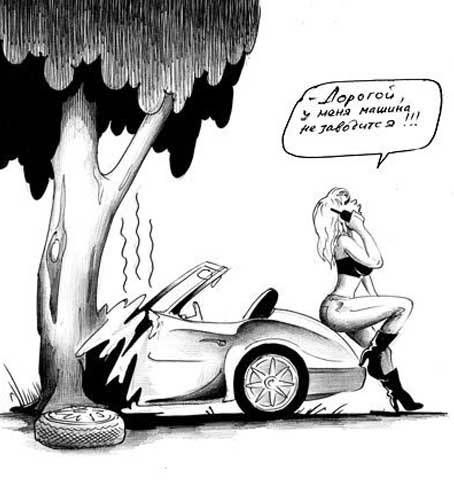 | Жена поехала на новом автомобиле мужа, а через час звонит: - Дорогой, у меня для тебя две новости: хорошая и плохая! - Начни с хорошей. - Подушка безопасности сработала! | Жена звонит мужу: - Дорогой, ты навигатор в моей машине трогал? - Да, смотрел расстояние от Москвы до Вологды! - Поздравляю, я в Вологде! | - Дорогая, ты сегодня очень аккуратно ведешь машину. - Да, блин, я права забыла. |