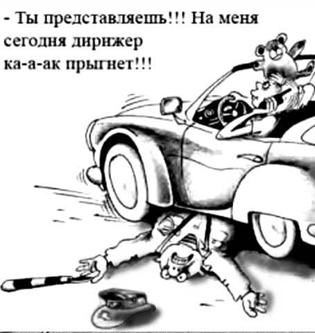 Муж: -Что завалила? Теорию или вождение? Жена: - Инспектора, дерево и двух пешеходов | - Доктор, я страшно нервничаю во время экзамена по вождению. - Да не переживайте, когда-нибудь все равно сдадите. - Но я его не сдаю, а принимаю. |